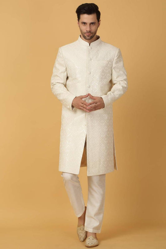 Shwet Banaras Embroidered Sherwani Set - Ivory White