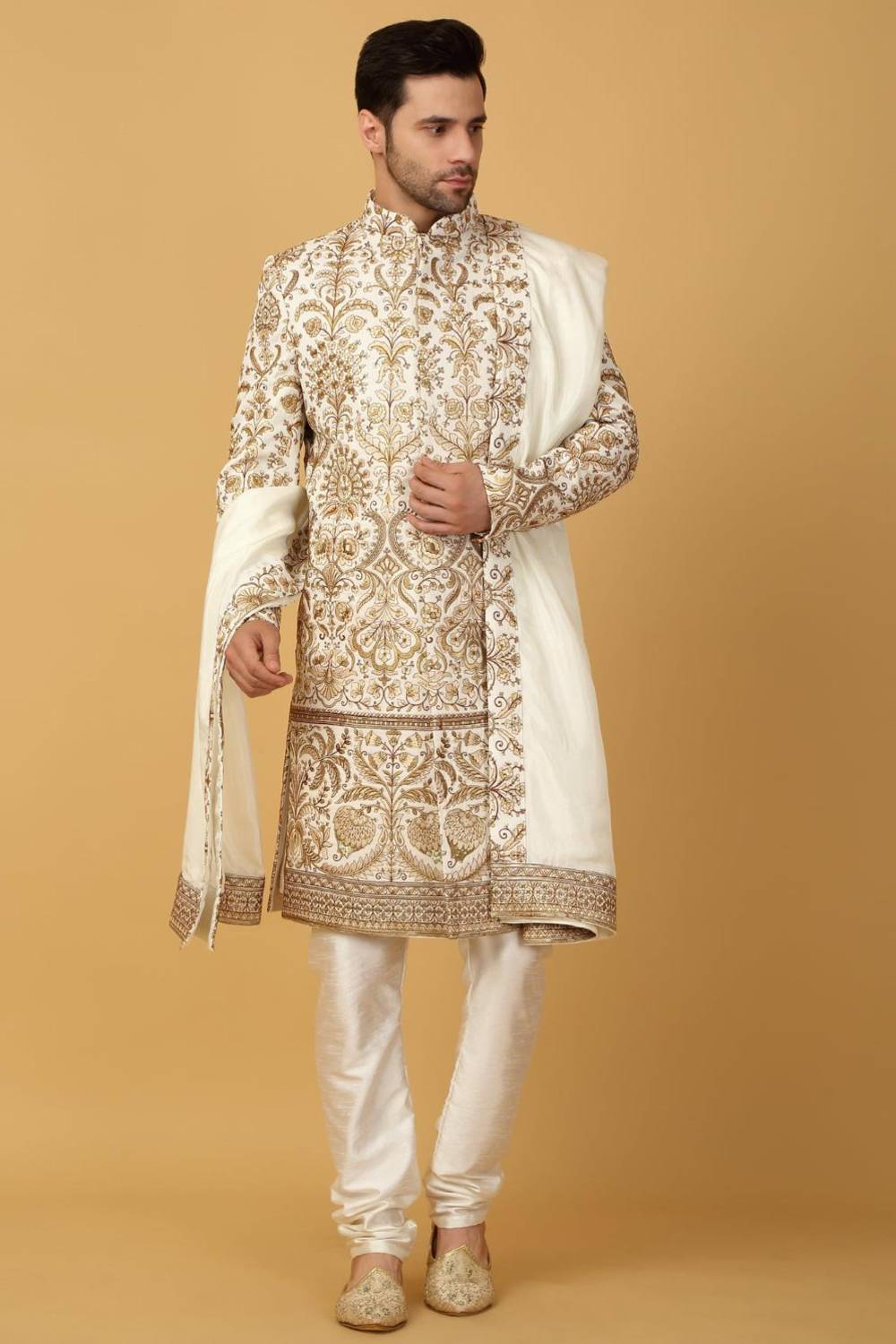 Shwet Banaras Embroidered Sherwani Set - Ivory White