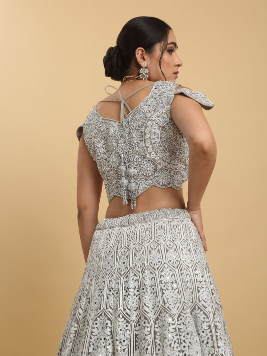 Chandra Kiran Silver Mirror Embroidered Lehenga Set