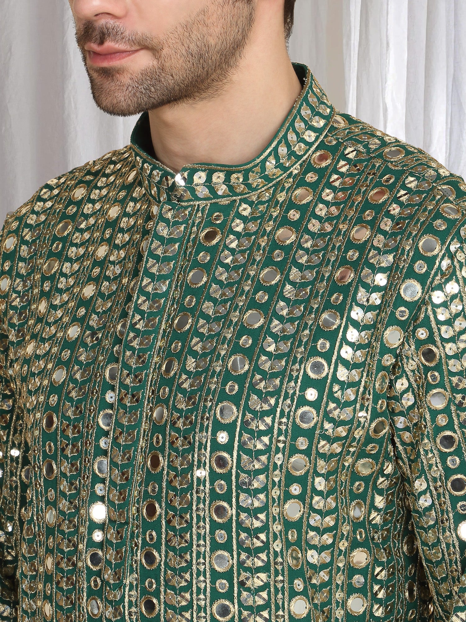 Festive Green Golden Thread Embroidered Kurta Dupatta Set