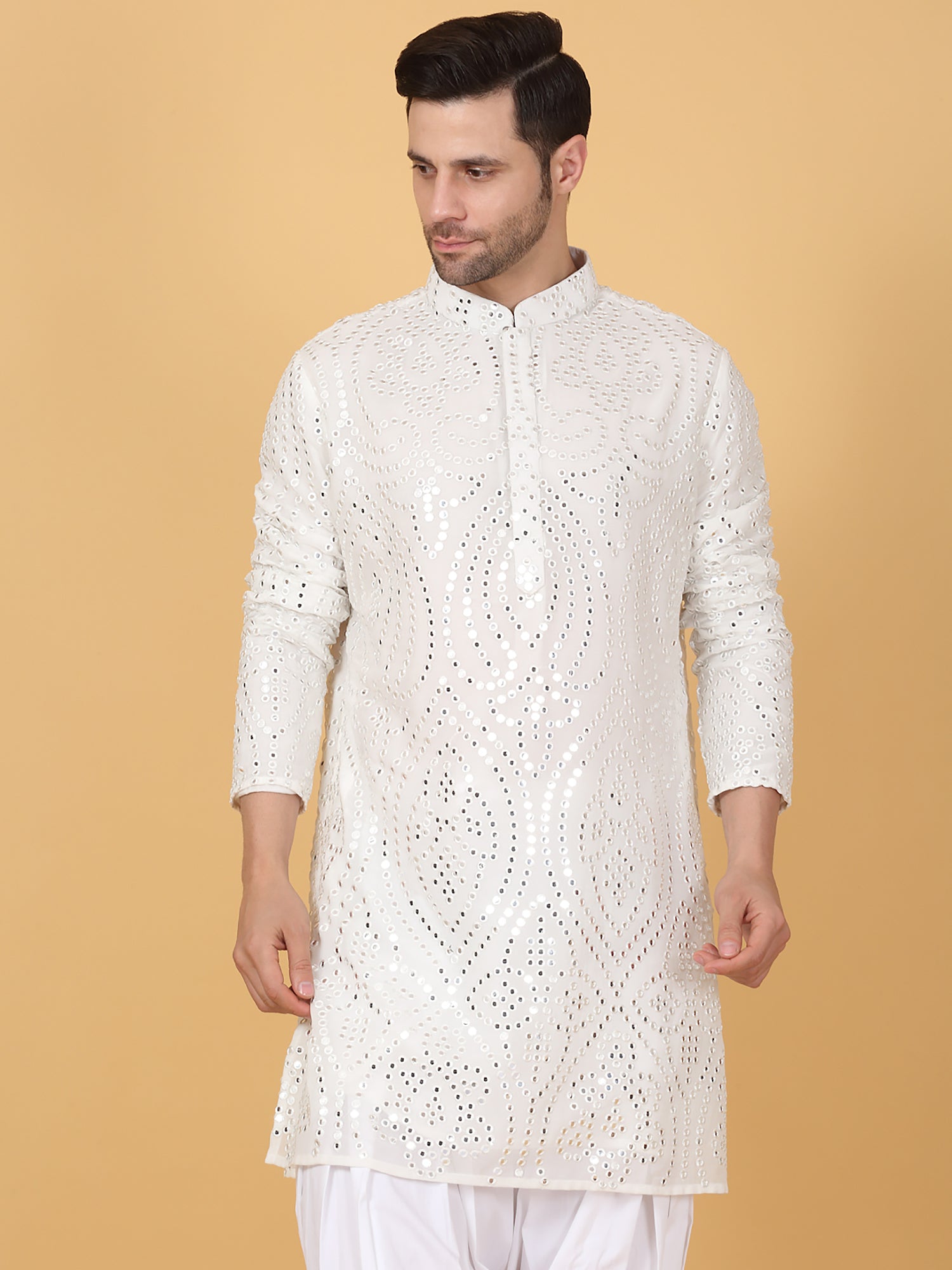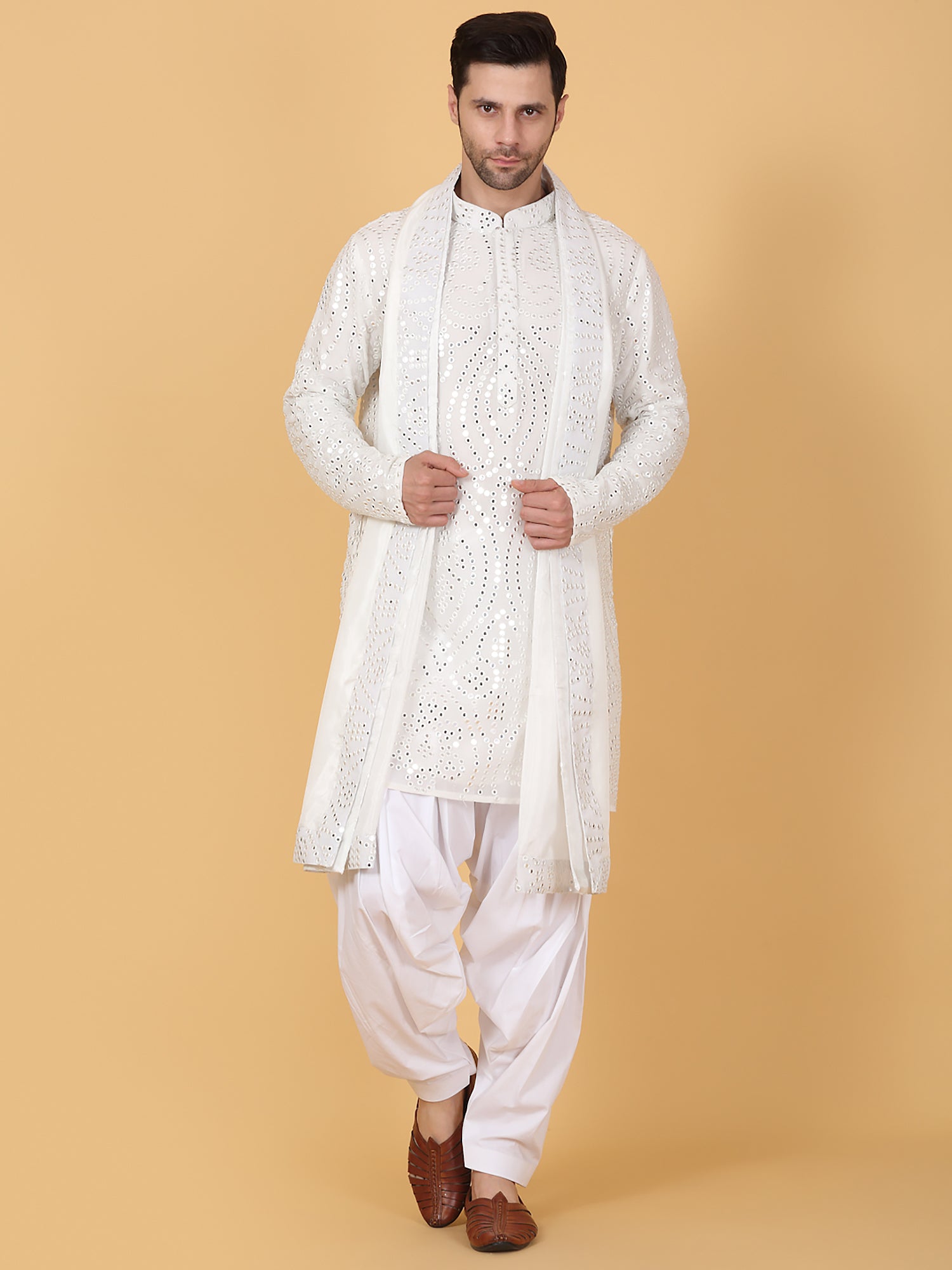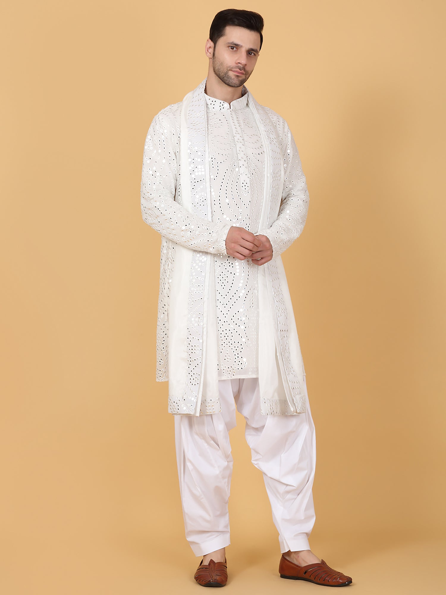 Jahaan Mirror Embroidery Work Kurta Set - White