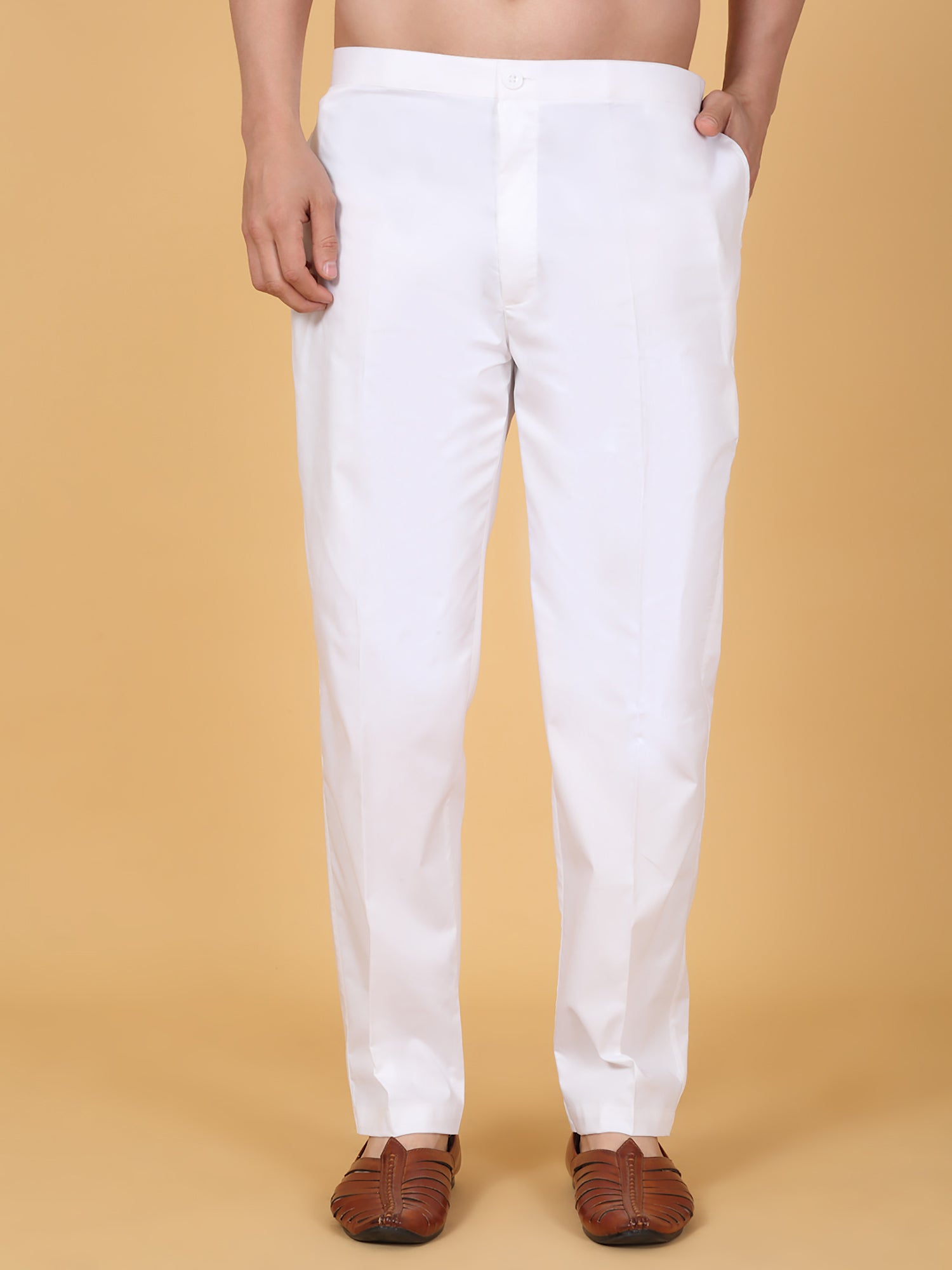 White kurta featuring mirror and thread embroidery in a stripe pattern. Paired with a matching pant that includes side pockets.Mandarin collar with detailed mirror work, Full sleeves with intricate embroidery, Side pockets in pant for convenience.
